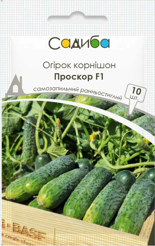 Огірок Проскор F1 - ранньостиглий (38-40 днів) самозапильний гібрид огірка корнішонного типу для відкритого і закритого ґрунту. Потужна рослина формує рівненькі темно-зелені огірочки розміром 9-12 см чудового смаку і структури. Відрізняється високою врожайністю, стійкістю до плямистості листя, борошнистої роси, вірусів пожовтіння судин й огіркової мозаїки. Використовується для квашення, має відмінну зовнішню і внутрішню якість плоду, що робить його ідеальним для переробки. Відмінний гібрид для отримання стандартизованих, хрустких корнішонів для засолки та консервації.