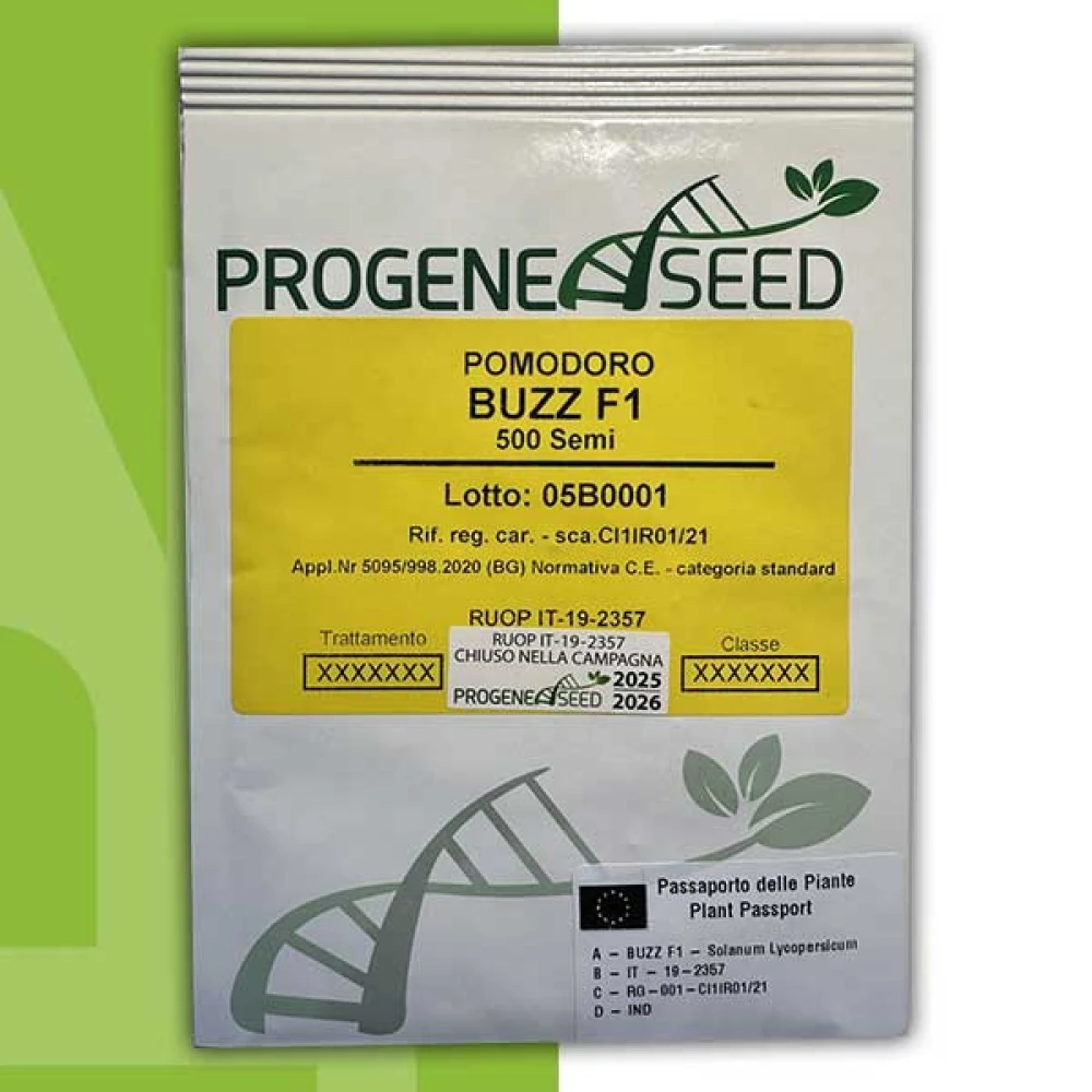 Томат Базз F1 – високоврожайний, індетермінантний гібрид типу черрі, придатний для вирощування в теплицях. Кущ міцний та має гарну силу росту, міжвузля короткі. Рослина має відмінне зав’язуванням плодів, а також досить морозостіка. Плоди невеликого розміру типу черрі вагою приблизно 6-8 г, яскраво-червоного кольору. На одній китиці може зав’язуватись в середньому з 18-20 плодів.