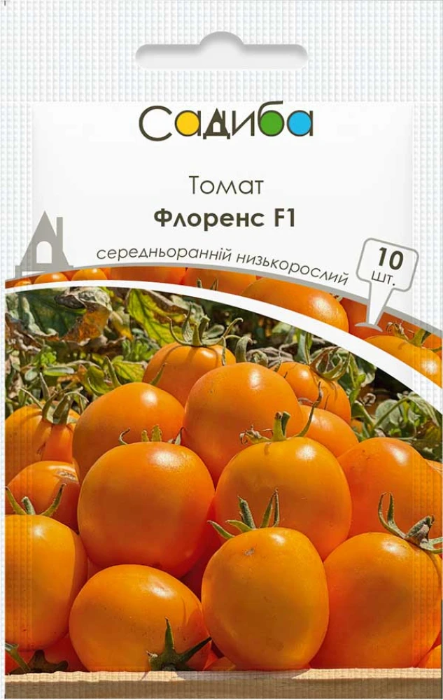 Томат Флоренс F1 - середньоранній (100-105 днів від сходів )врожайний низькорослий гібрид жовтоплідного томату-сливки для відкритого ґрунту. Рослина міцна з добре розвиненим листям, може формувати на одній рослині до 80 плодів кожний вагою 65-70 г, зі смачним соковитим м’якушем. Гібрид відносно стійкий до поширених захворювань, гарно лежить і транспортується, добре витримує навантаження плодами. Bирощується для свіжого ринку та переробки, користується великим попитом для отримання продукції для супермаркетів та ринків.